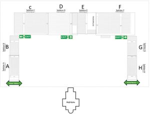Arenan har två Entréer. En från Södra Storgatan (vid Näcksrosen) och en från Norra Storgatan (vid Lennarts Konditori).